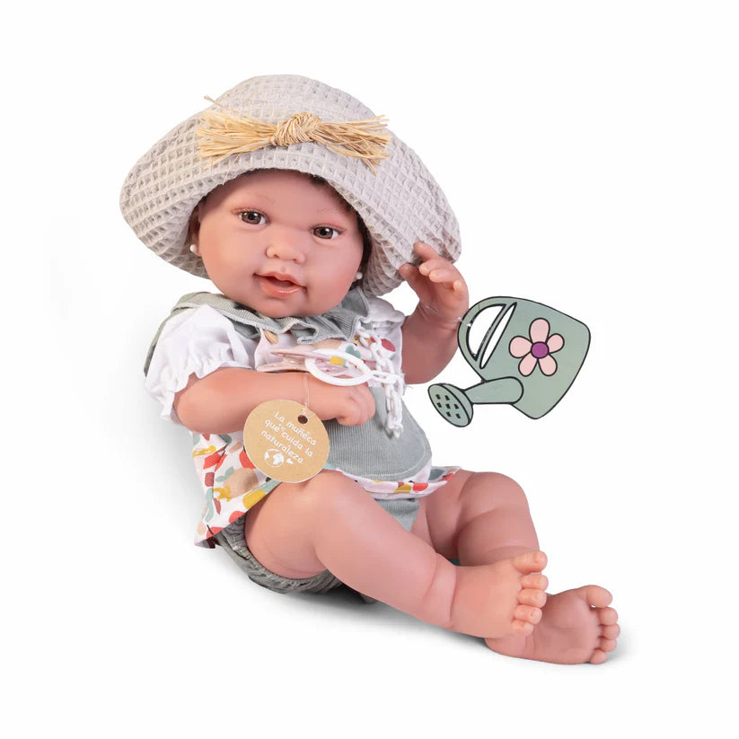¡Nos encanta jugar y cuidar la naturaleza! Con Recién Nacida Pipa podrás jugar a cuidar tu jardín con su regadera y vivir una experiencia única y educativa. Esta adorable muñeca de 42cm se ha convertido en la favorita de niños y familias conscientes del medio ambiente por su increíble mensaje ecológico y su accesorio único: una etiqueta de papel con semillas reales que podrás plantar en una maceta para que con mucho mimo, crezca una flor. Todo serán momentos de diversión y aprendizaje sobre el cuidado de la naturaleza.
