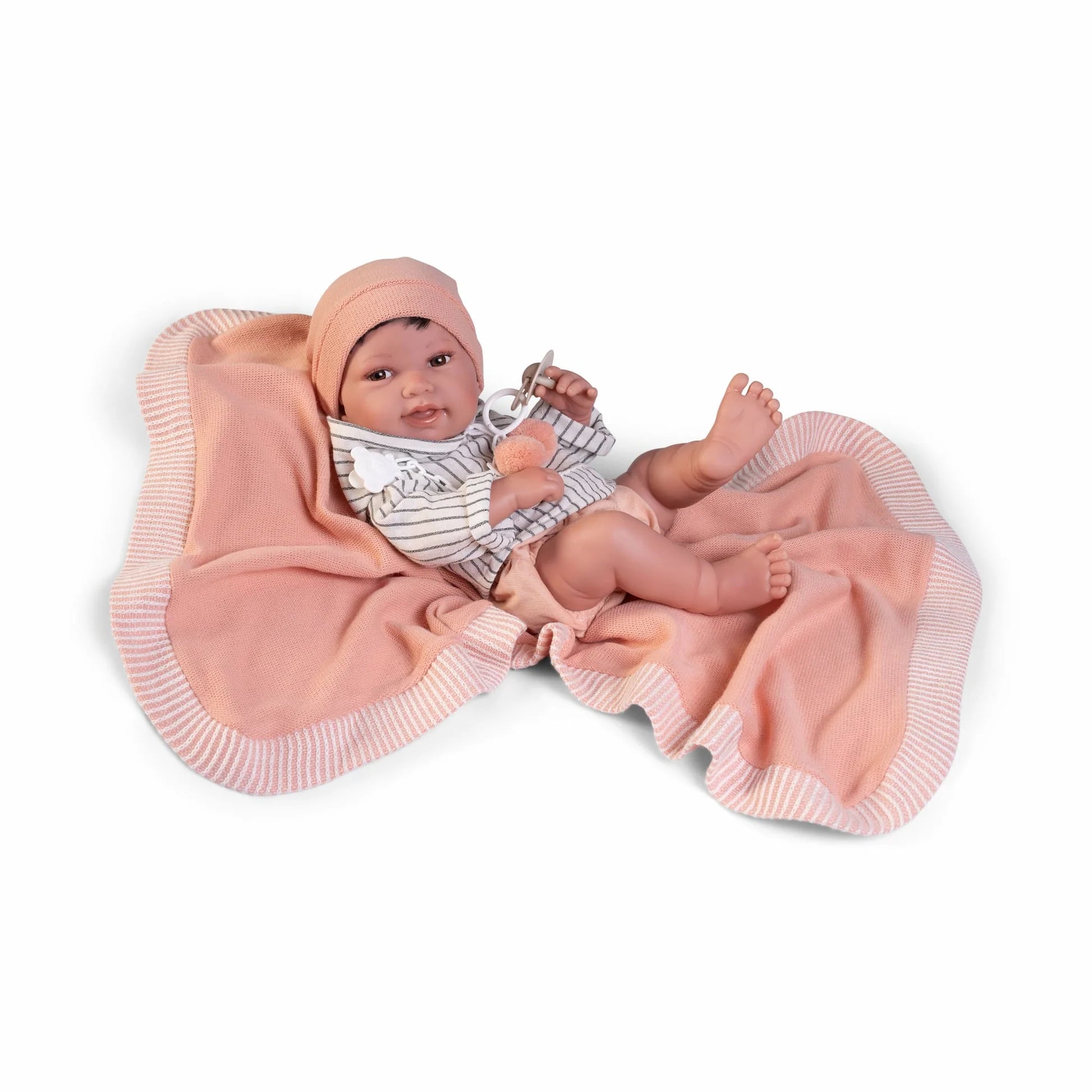 ¡A Recién Nacido Pipo le gusta acurrucarse entre su toquilla y descansar plácidamente! Este adorable muñeco de 42cm se ha convertido en el favorito de niños y familias por su increíble ternura y su accesorio único: una toquilla especial con la que le podrás abrazar y acurrucar. Pero como es muy travieso también le gusta jugar contigo. Su conjunto va a juego con su toquilla, creando un look coordinado absolutamente encantador. ¡Con Pipo todo serán momentos de diversión y ternura!