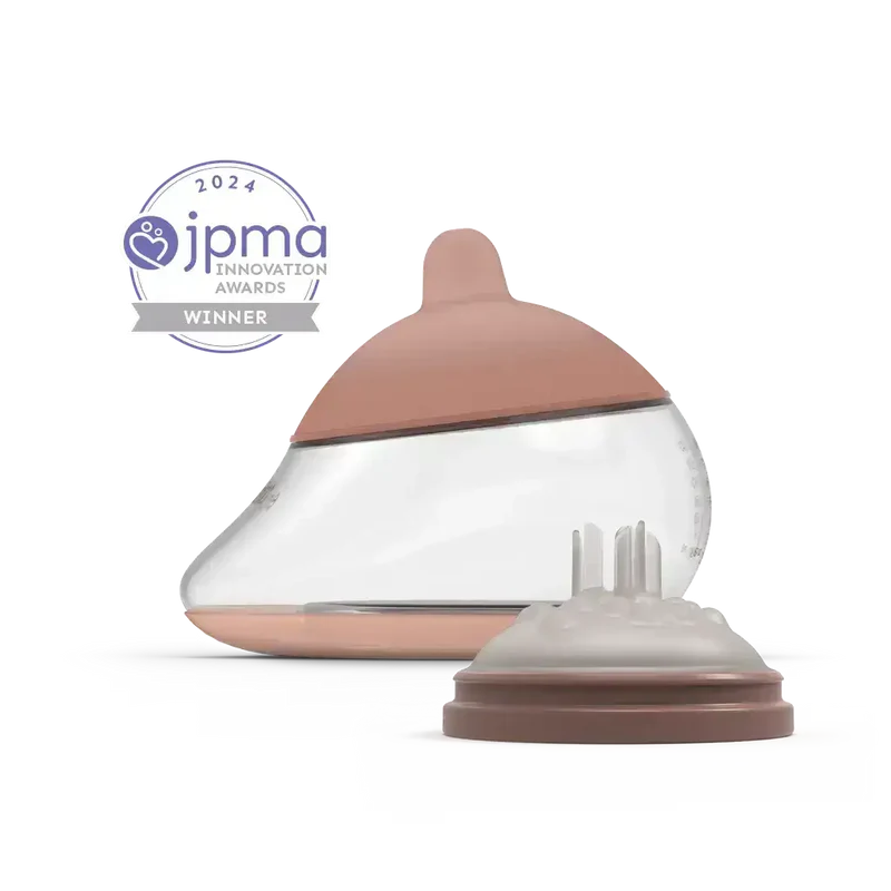 The Anatomy Bottle is our iconic breast-shaped baby bottle, designed to emulate the breastfeeding experience. Its design enables a baby-to-breast position, facilitates eye contact with baby, and supports responsive feeding.